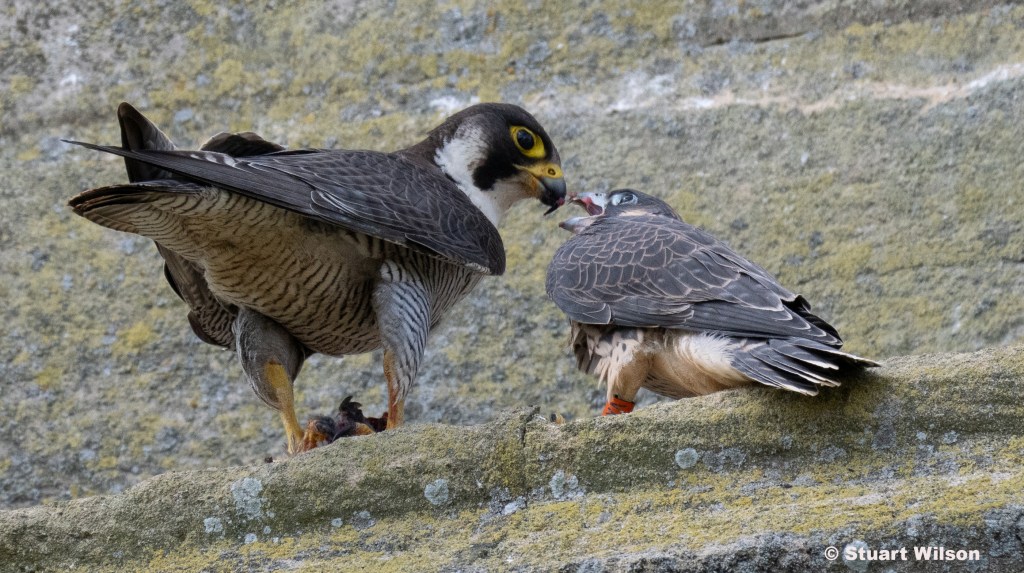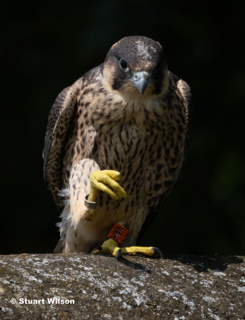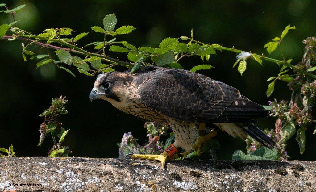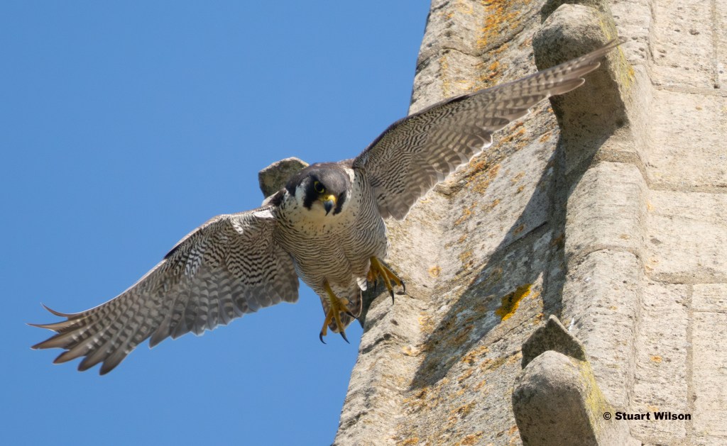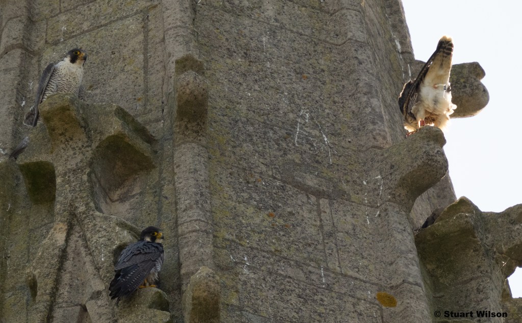 Early this year a male peregrine was spotted in and around the tower of St Peters’ Church in Yaxley Nr Peterborough. Several different females were seen vying for the males’ affection. It was soon spotted that the male was ringed – Orange VJP. This male was part of a brood reared in Stamford in 2021 so it was fantastic to see this male potentially pairing up and breeding.