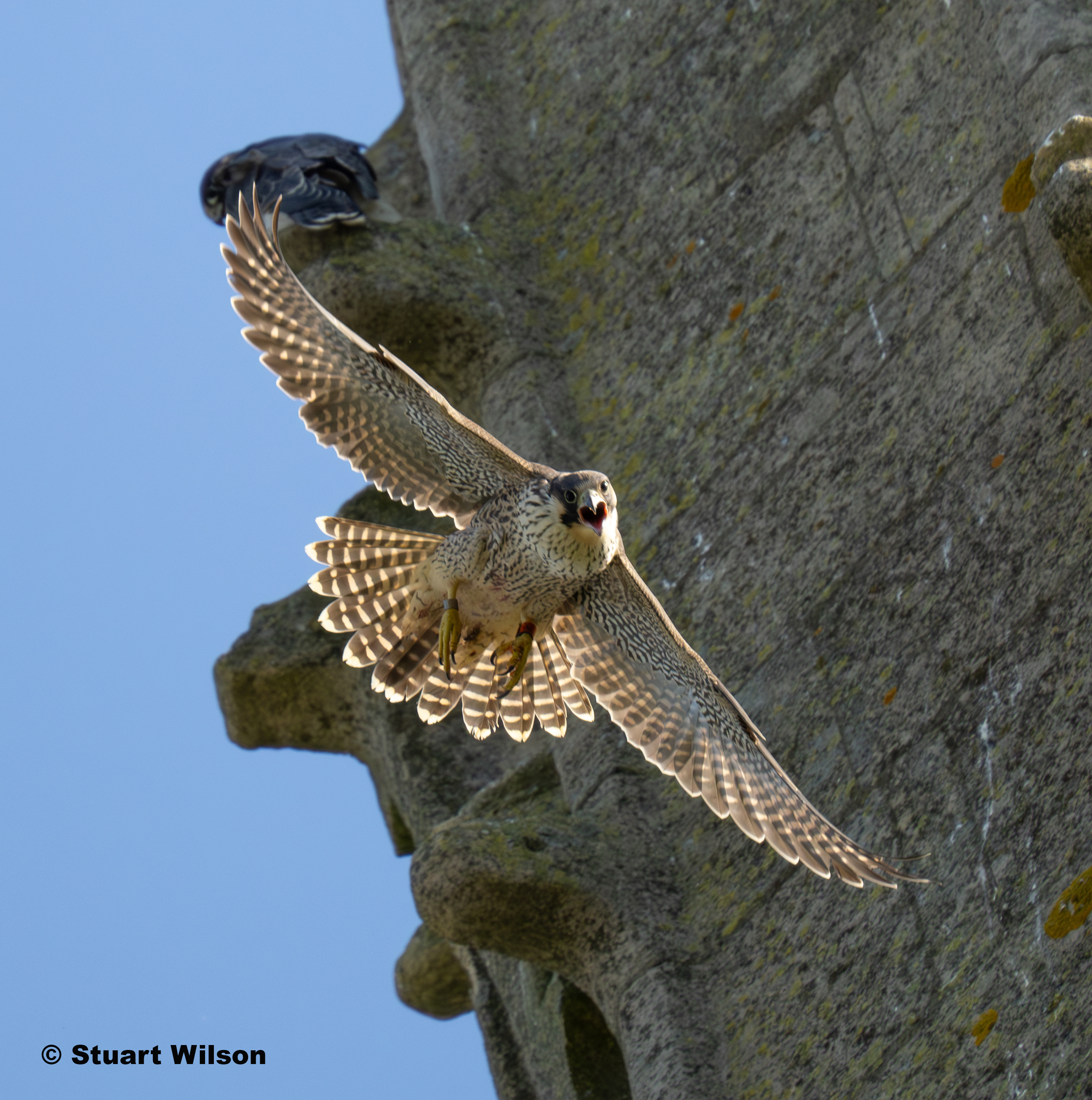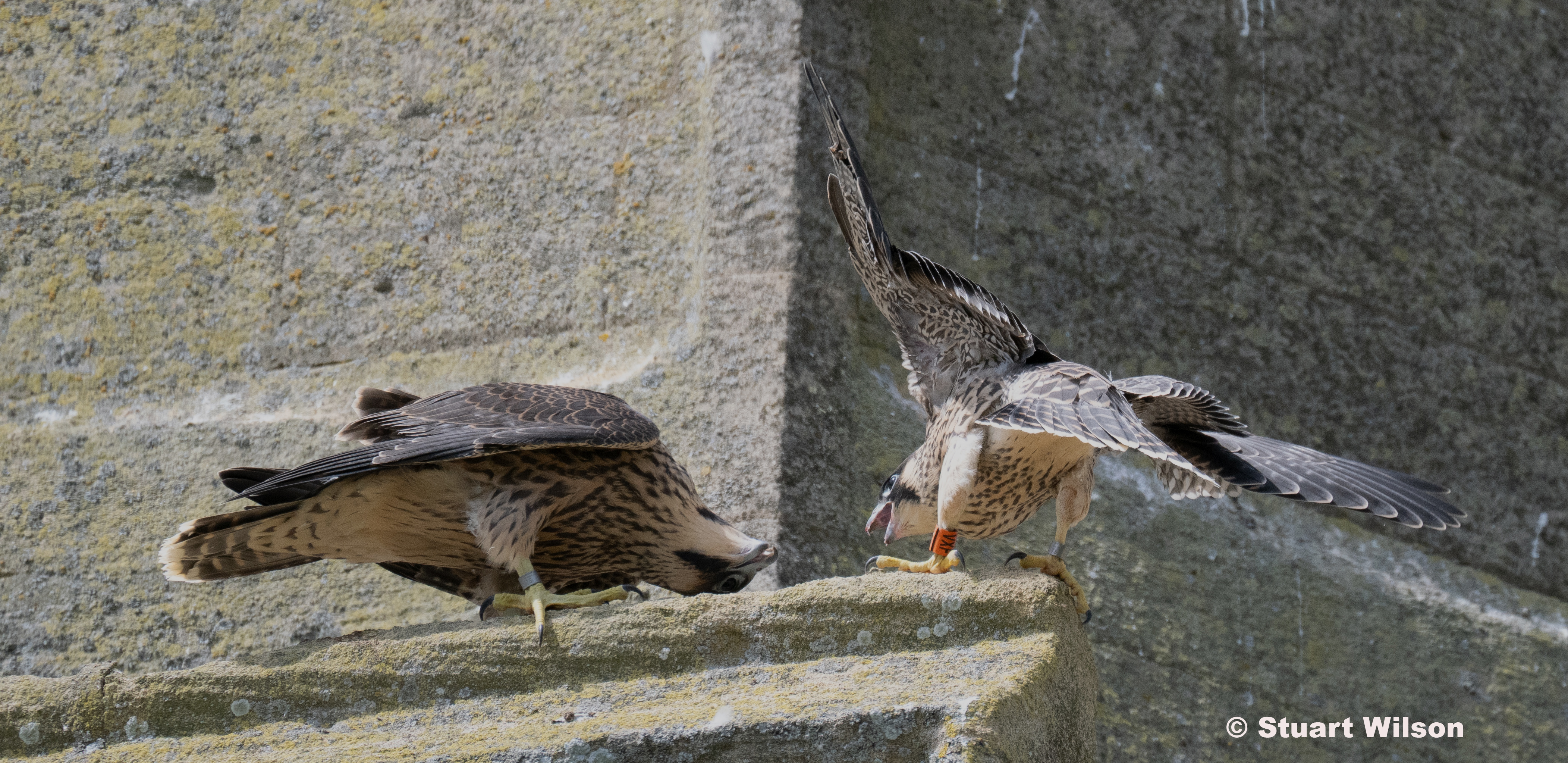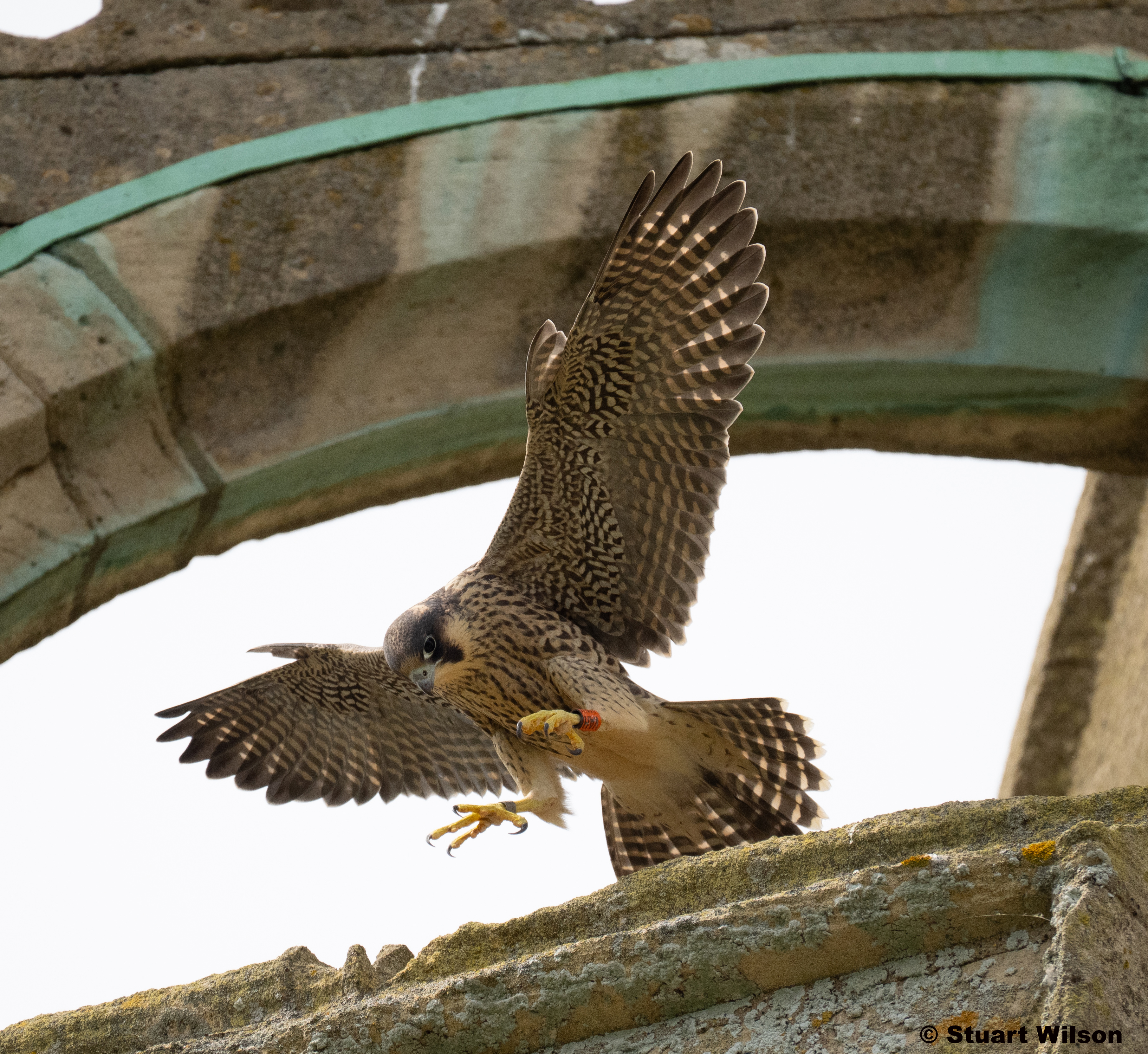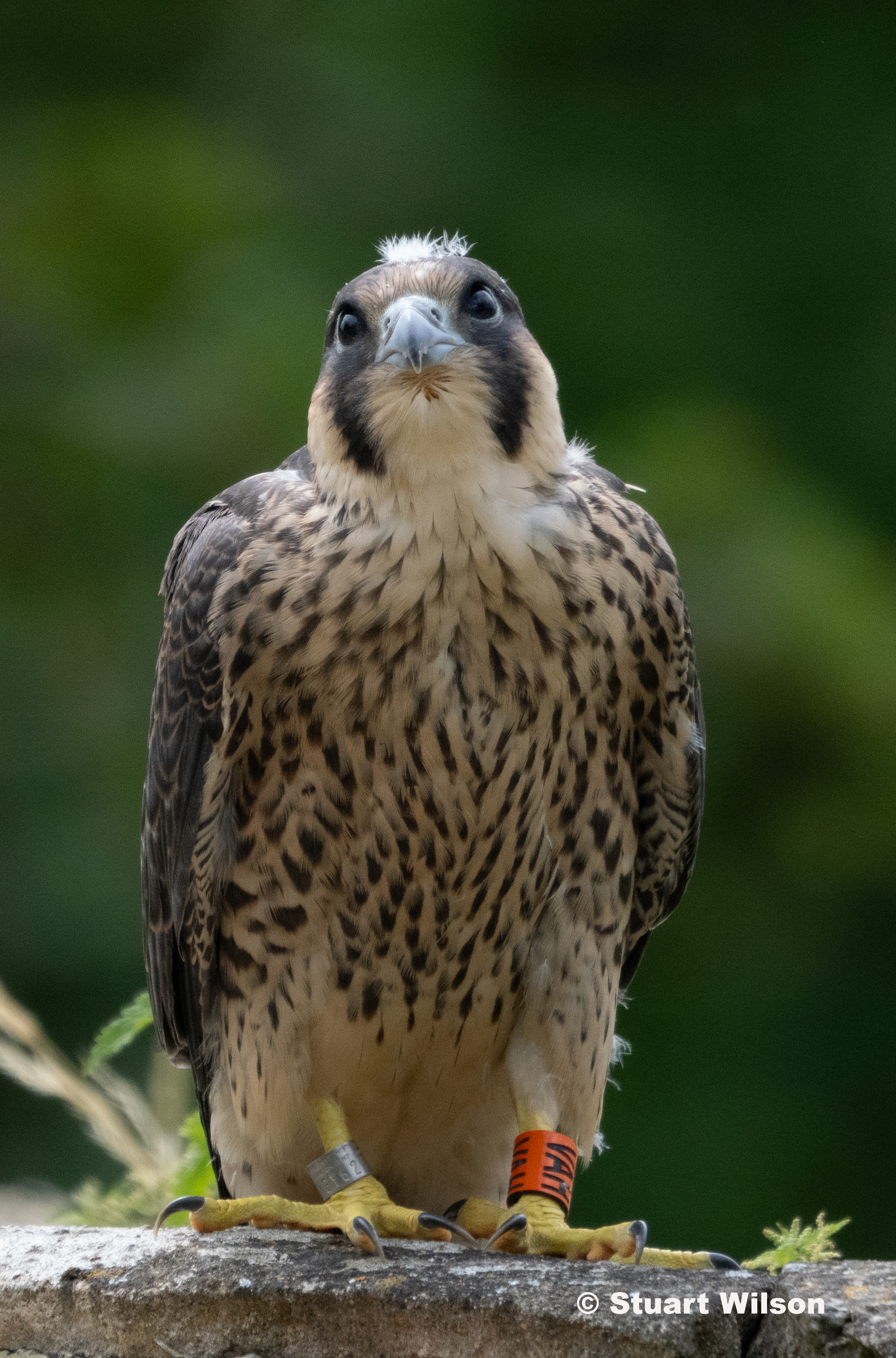 Early this year a male peregrine was spotted in and around the tower of St Peters’ Church in Yaxley Nr Peterborough. Several different females were seen vying for the males’ affection. It was soon spotted that the male was ringed – Orange VJP. This male was part of a brood reared in Stamford in 2021 so it was fantastic to see this male potentially pairing up and breeding.