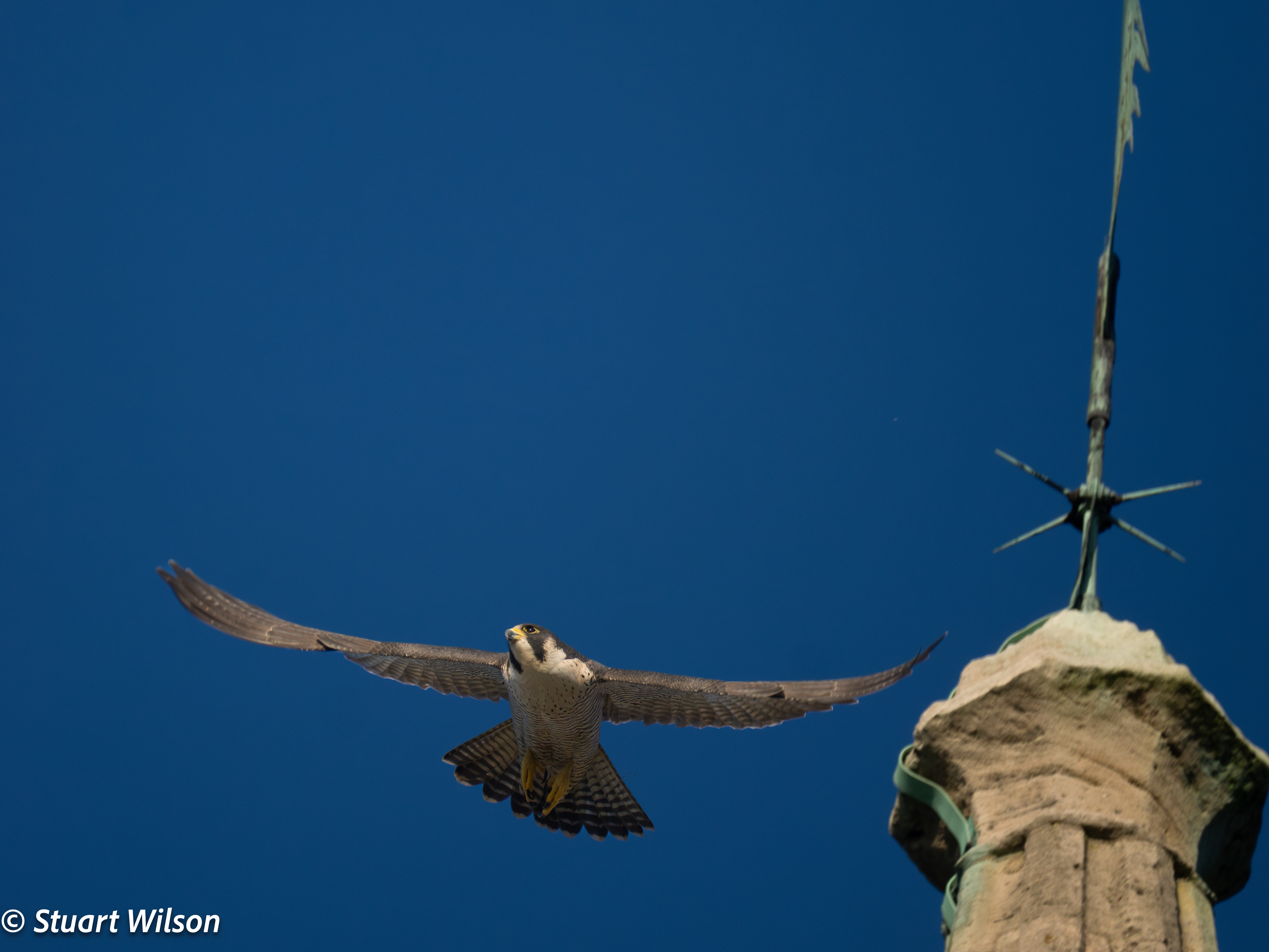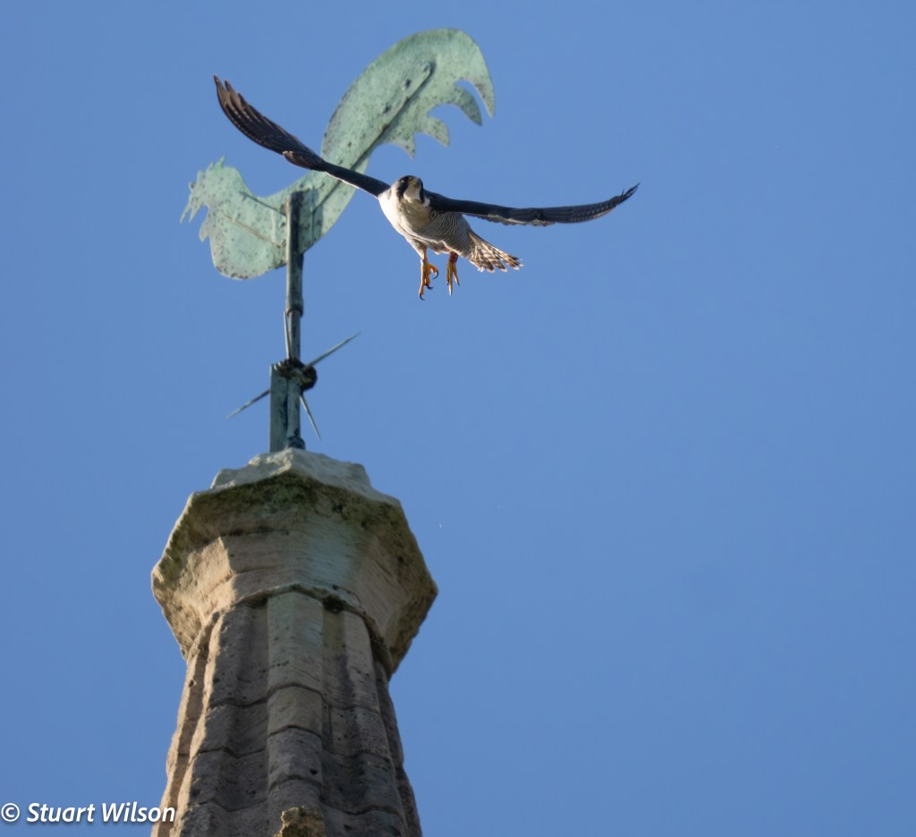 I caught Stamford’s tiercel on St Mary’s church – he was sizing up hunting opportunities and then he went for a pigeon lower down on the church – he failed!