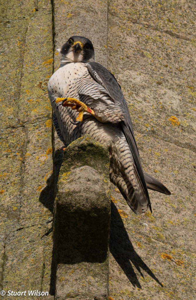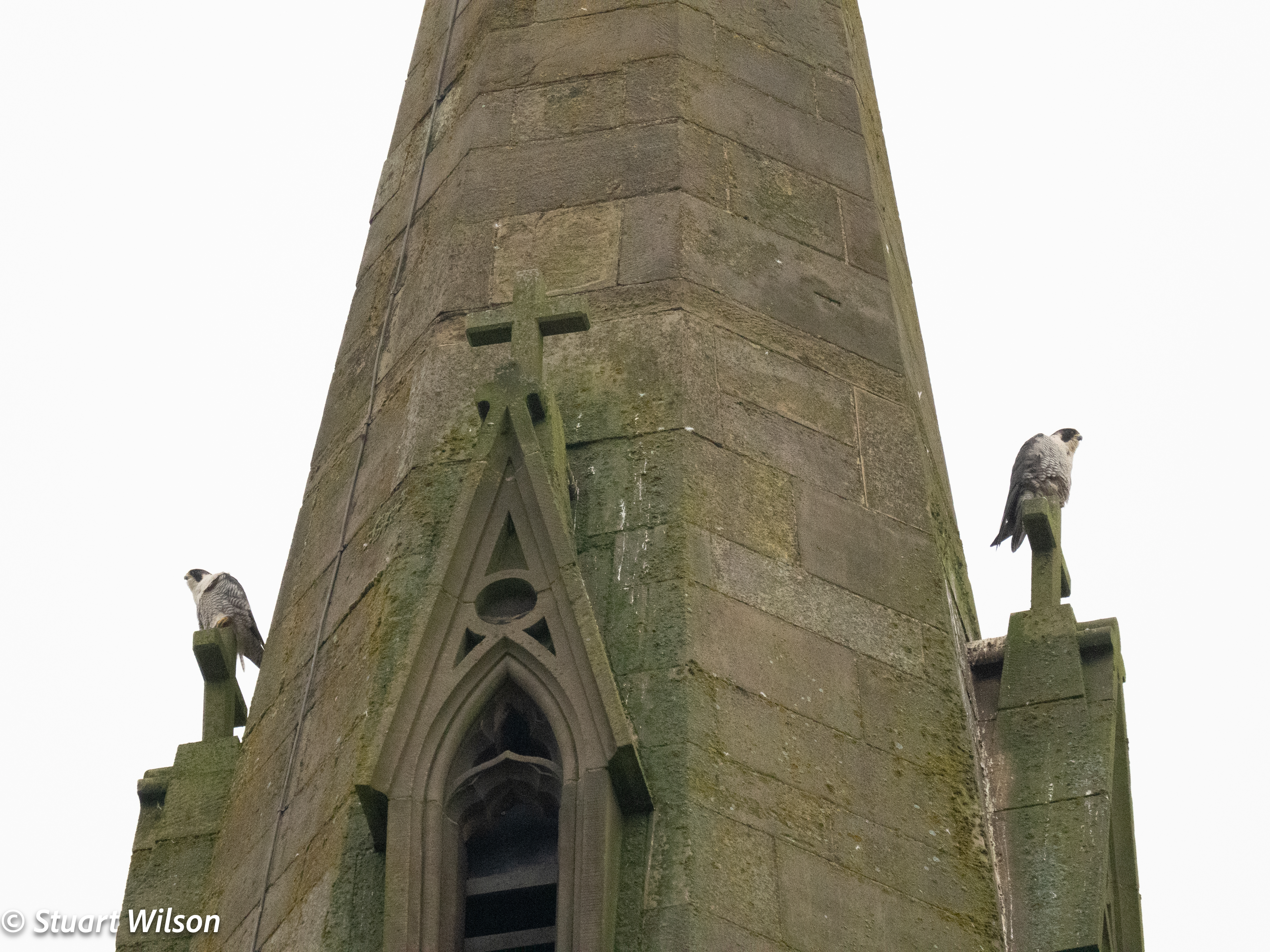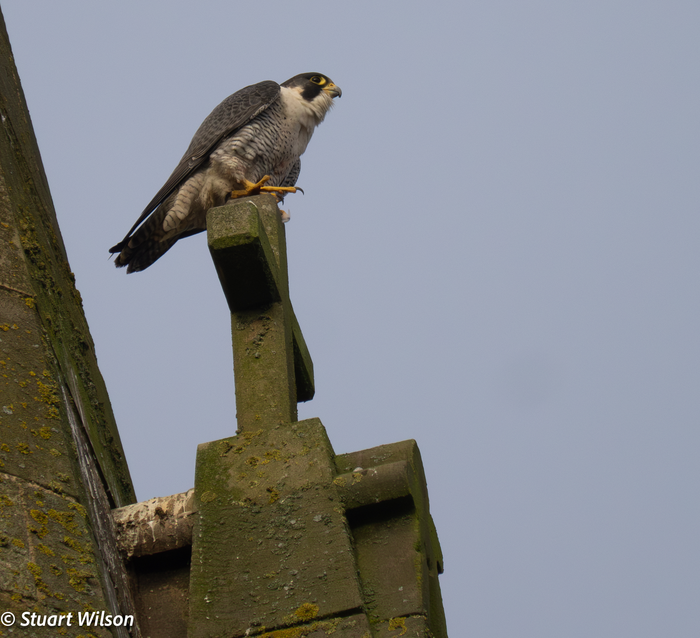 My first visit to Market Harborough and sat outside St Dionysius church I heard a peregrine calling. I saw a tiercel who then called to another bird which turned out to be the falcon with prey. She flew to a nearby building with it and would not let him share.