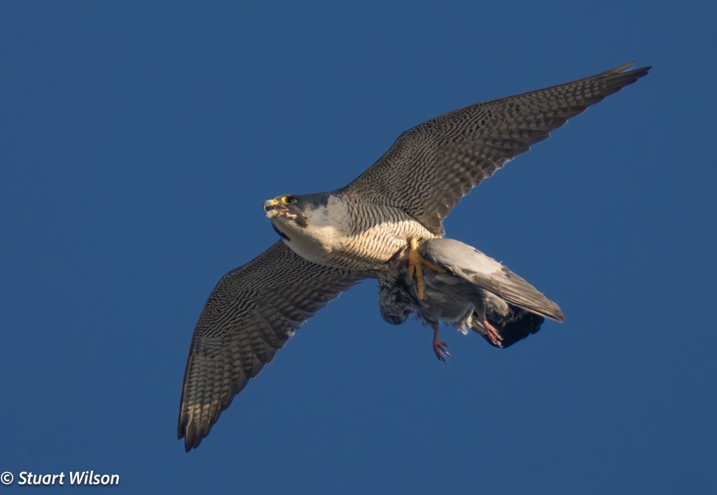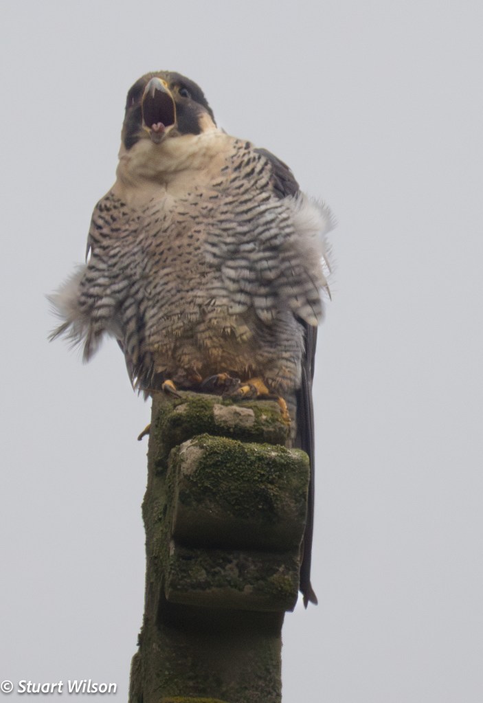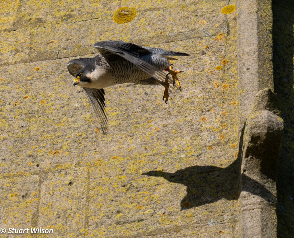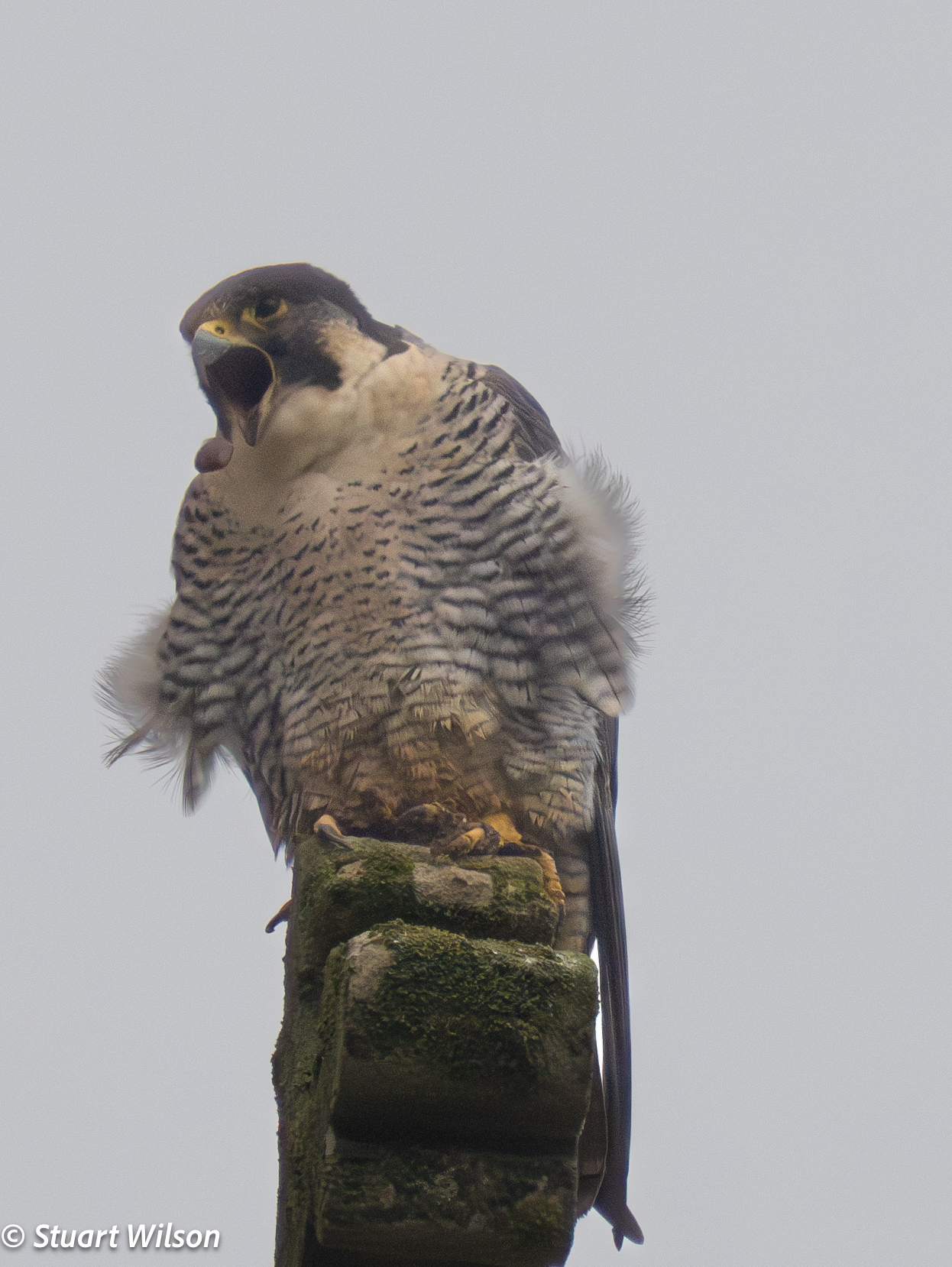 My first visit to Market Harborough and sat outside St Dionysius church I heard a peregrine calling. I saw a tiercel who then called to another bird which turned out to be the falcon with prey. She flew to a nearby building with it and would not let him share.